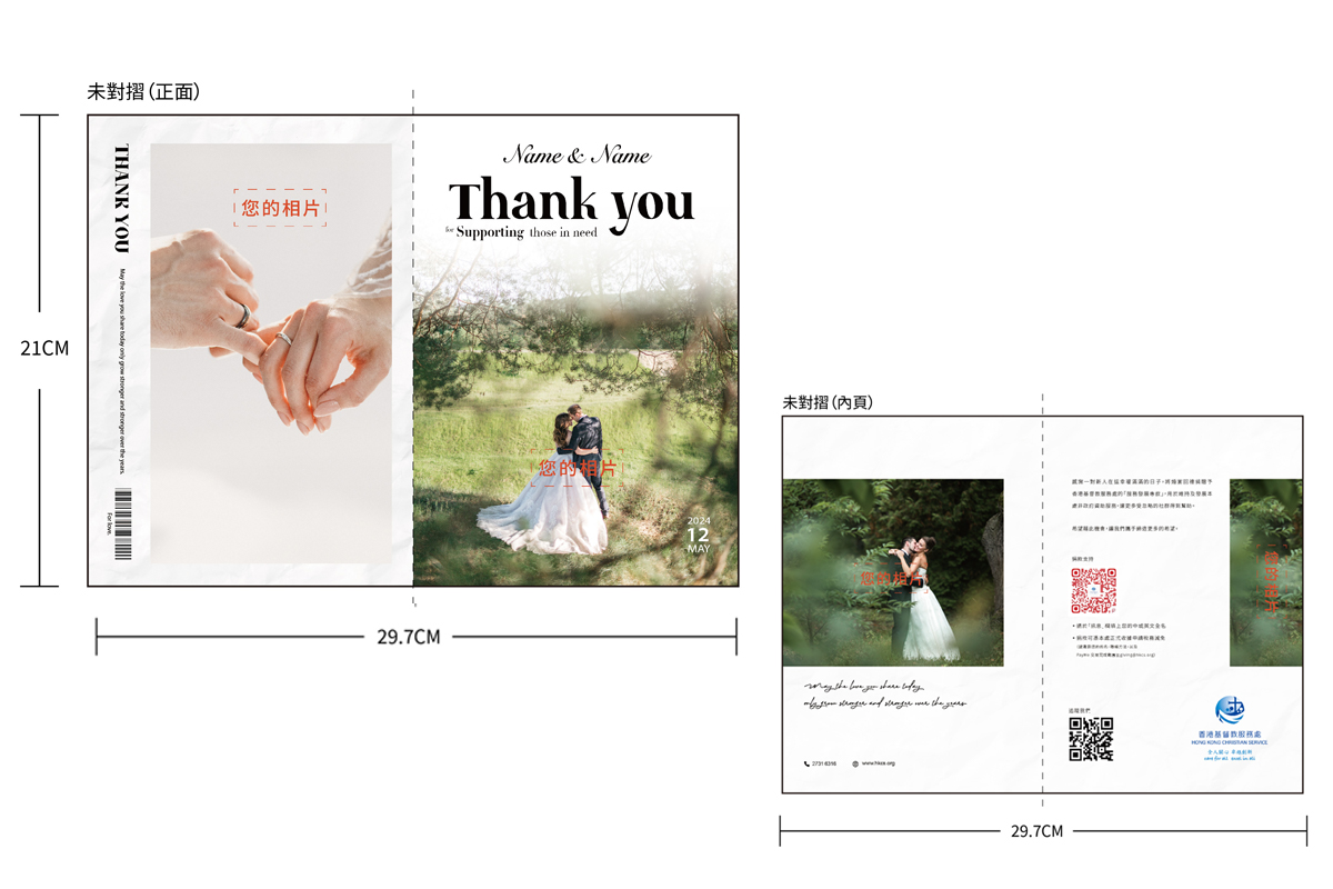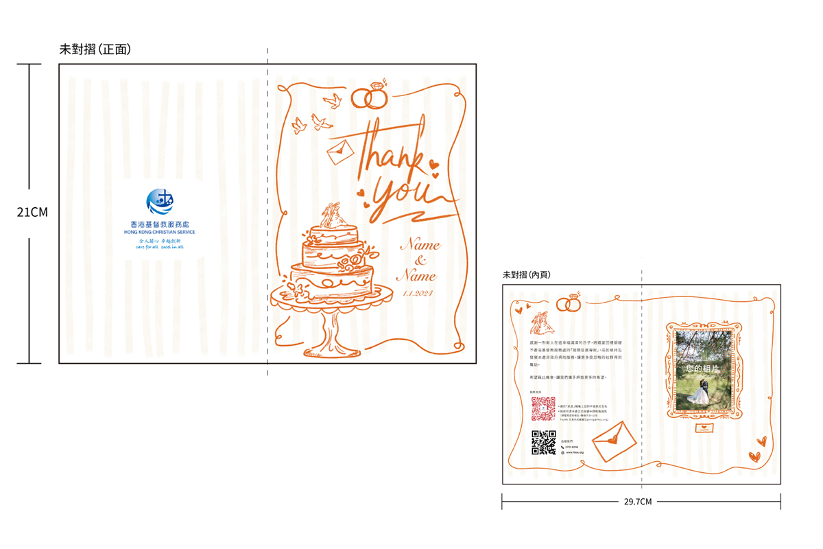 我們會特別為您們預備精美心意卡或座檯卡*致送給眾賓客,讓他們一同分享助人的喜悅。